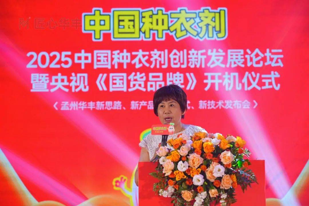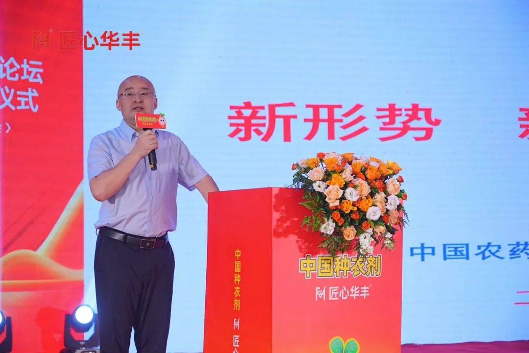 河南省政府参事、河南省种子处理悬浮剂工程技术研究中心主任毛景英发表致辞。她指出,种衣剂,看似是种子外衣上的一层“保护膜”,实则是农业生产的“第一粒扣子”。从一粒种子的萌发开始,它就肩负着守护幼苗、防治病虫害、抗旱抗寒抗逆的重任,直接关系到“从产量到餐桌”的安全与效益。河南作为农业大省、粮食生产核心区,肩负着保障国家粮食安全的重任,而种衣剂技术的创新与应用,正是筑牢粮食安全防线、提高产量,推动农业高质量绿色环保发展的关键一环。近年来,孟州市华丰生化农药有限公司不断深耕创新,从解决花生病虫害、小麦病虫害,特别是小麦茎基腐病等作物病虫害的难点,与科研院校携手攻坚,以科技为种子 “穿好衣”,践行 “保稼卫农”初心。她呼吁众人争做技术创新者与品牌守护者、推广者,让中国种衣剂闪耀光芒。